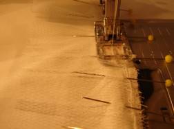 Den Tüll einkräuseln. Gleichmäßig an dem Unterrock verteilen, feststecken und annähen. |