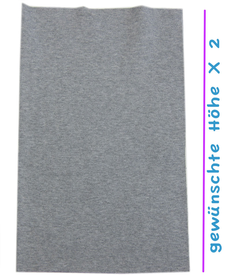 Die Höhe nach Wunsch wählen. Der Kragen wird doppelt so hoch wie die Wunschlänge und in der oben ermittelten Breite, zzgl. Nahtzugabe zugeschnitten. |